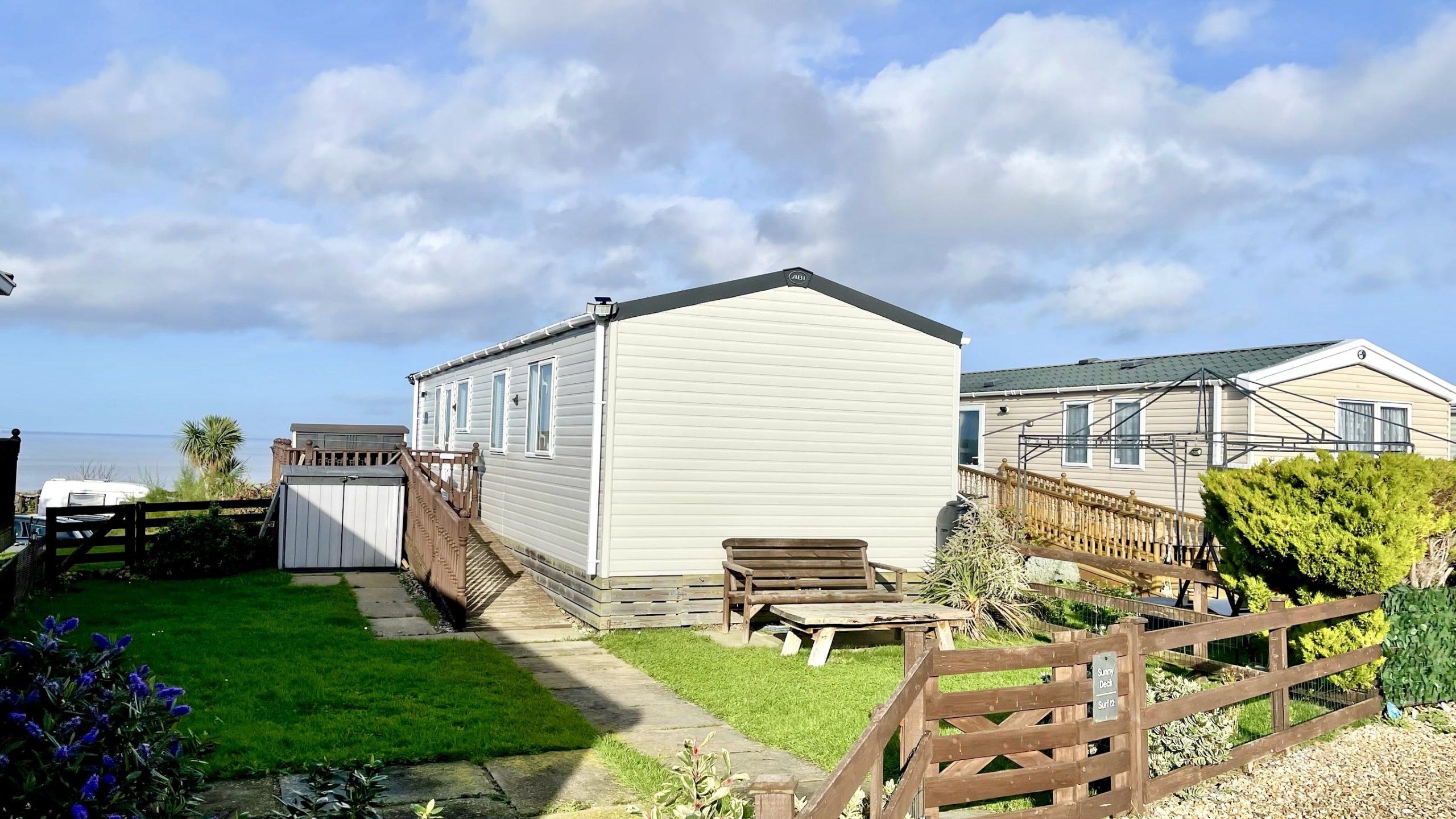 Discover this 2020 ABI Windermere, a beautifully designed luxury static caravan for sale at St Audries Bay Holiday Club. It is located in the scenic village of West Quantoxhead, Somerset. Perfectly positioned on pitch Surf 12, this holiday home offers easy access to the park’s top facilities. The pitch boasts a large wrap-around deck, private parking space, and a spacious grassy area for outdoor relaxation.