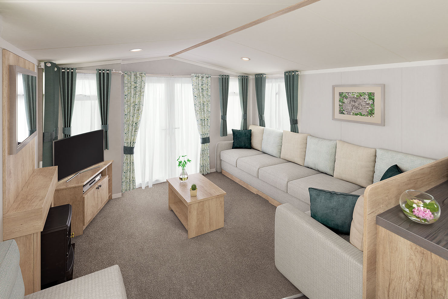 This Swift Burgundy is well-equipped and furnished to the highest standard. The bright living area gives you a warm welcome feeling as you walk through the door with glorious countryside views enjoyed from inside. The relaxing l-shaped sofa provides plenty of seating, this doubles up into a sofa bed when additional guests arrive. Enjoy the colder months with the warmth of the electric fire, giving you that extra cosy feeling.